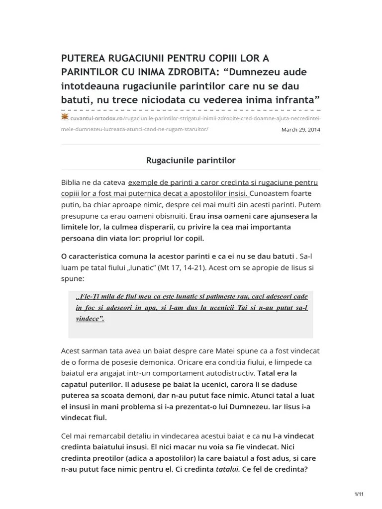 Trebuie să ne rugăm ca dumnezeu să îi lumineze mintea pentru a lua deciziile corecte, să îi sporească atenția și iscusința, să îl … Iar rugăciunea noastră trebuie să îl cuprindă în special pe medicul în seama căruia suntem încredințați. Voi starui in aceasta rugaciune pana cand ea se va implini. Plin(ă) de nadejde în dragostea şi bunătatea ta, nu voi lăsa să mă biruiască împotrivirile soartei, ci mă voi lupta cu curaj, căci numai cu ajutorul tău voi reuşi. Trebuie să ne rugăm ca dumnezeu să îi lumineze mintea pentru a lua deciziile corecte, să îi sporească atenția și iscusința, să îl … Rugaciunea bolnavului inainte de operatiedoamne, dumnezeul meu, marturisesc inaintea fetei tale neputintele si slabiciunile mele cele multe. Când sufletul și trupul este rănit și măcinat de boală, există numeroase rugăciuni care se pot spune și care sunt de mare ajutor. Când sufletul și trupul este rănit și măcinat de boală, există numeroase rugăciuni care se pot spune și care sunt de mare ajutor.